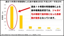 毎年、スイセンをニラと間違えて食べ、食中毒になるケースが発生しています。 また、有毒な植物を野菜や山菜と間違えて食べたことによる食中毒も多く報告されています。 こちらでは、実物のニラやスイセンなどを展示し、有毒植物を見分けるポイントなどを紹介しています。 |