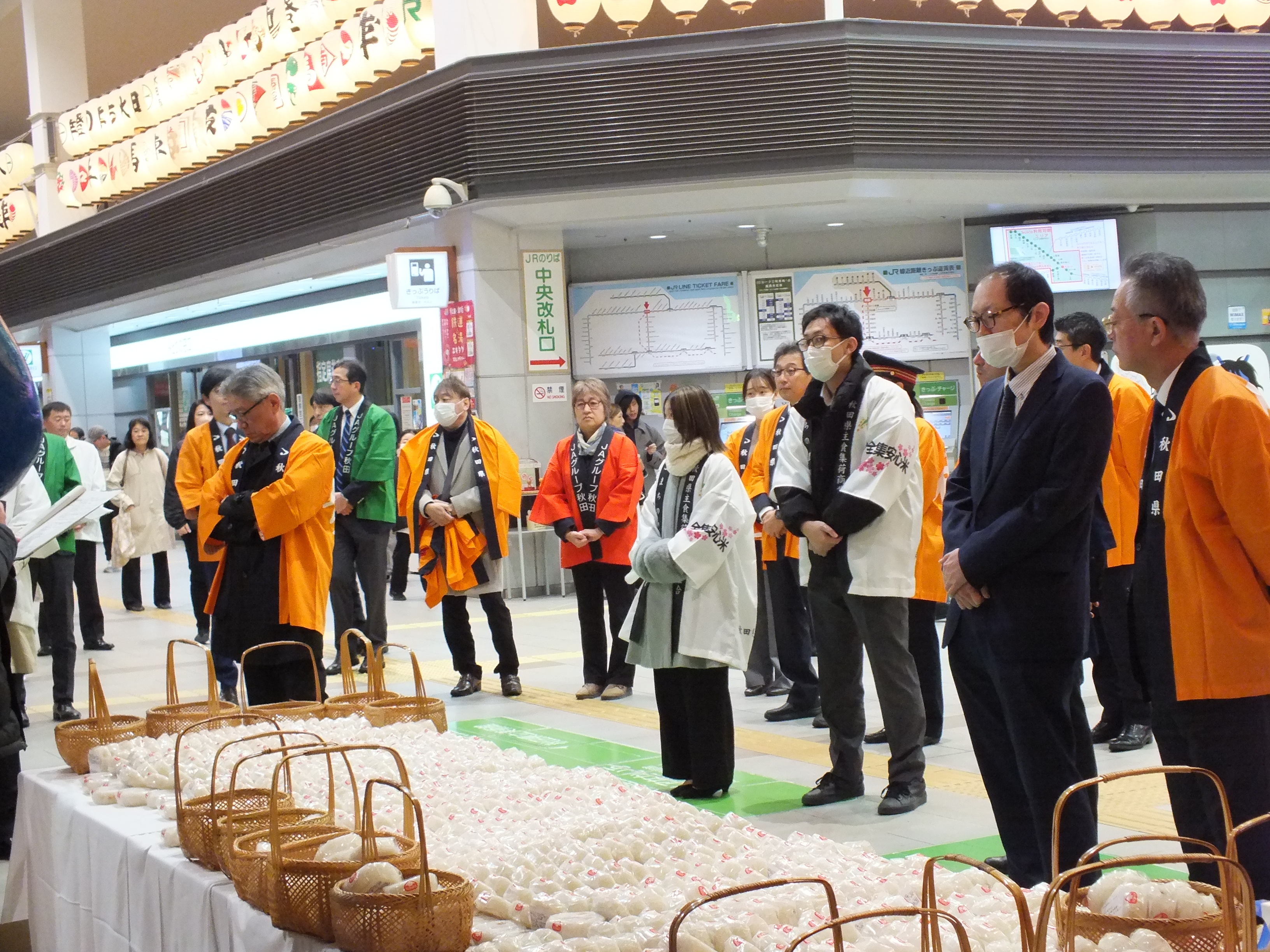 11月21日、秋田県や農業団体等で組織する「秋田県ごはん食推進会議」主催の「朝ごはんモーニングキャンペーン」がJR秋田駅で行われました。