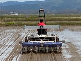 八郎農場では限られた人手でほ場を維持するため、農作業の省力化の取組として約20年前から湛水直播栽培を行っています。また、来年からは更なる省力化と作業時期の分散を目指し、乾田直播栽培にも挑戦するとのことです。