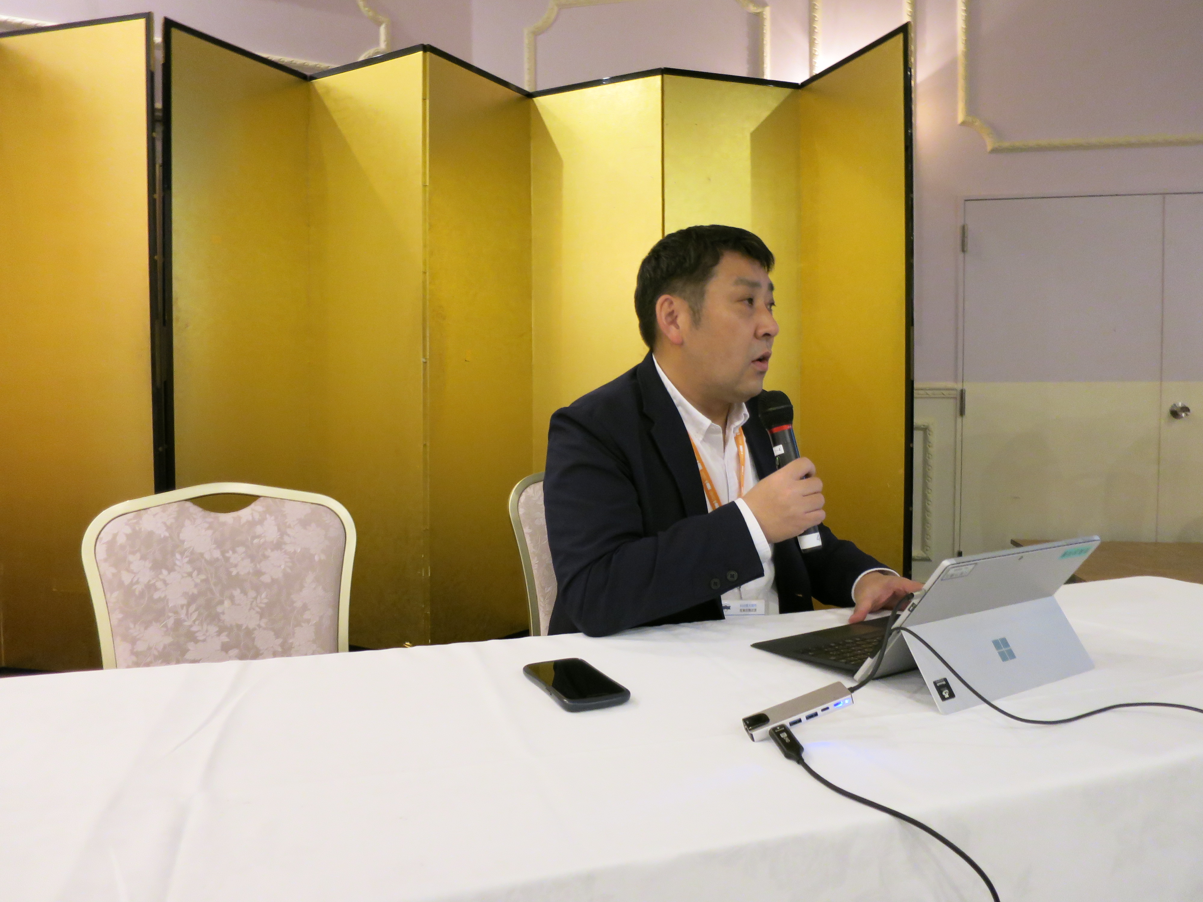 基調講演では、東北農政局生産部園芸特産課成田輸出産地サポーターが「輸出をめぐる状況について」と題し、また、経営・事業支援部輸出促進課島本輸出産地サポーターが「東北農政局輸出促進に係る取組について」と題し、フードマーケットの大きな可能性や農産品の輸出に対する事業者等への支援策を分かりやすく説明されました。