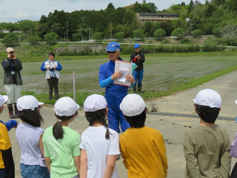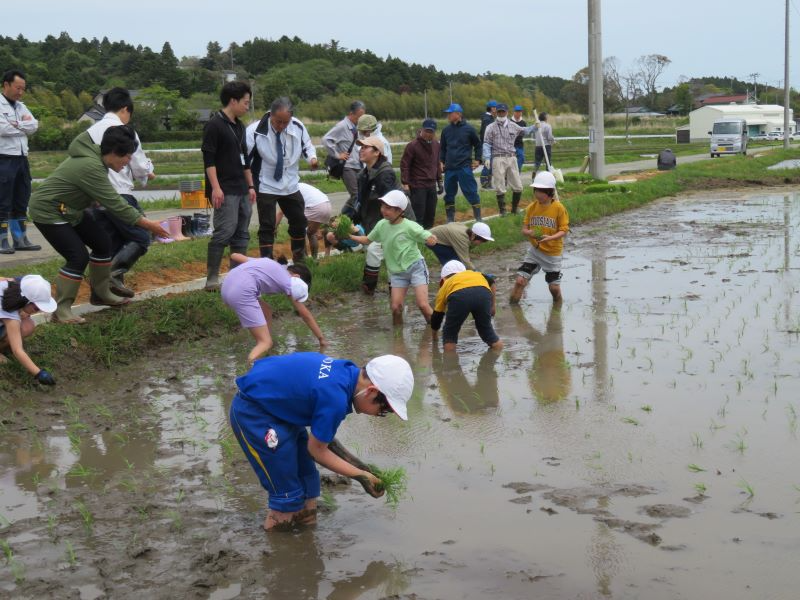 富岡町は、毎年、町内の小学生に基幹産業である農業と食の大切さを学んでもらうため、田植え体験授業を企画しています。今年は、富岡小学校の3年生(12名)がふるさと生産組合(毛萱地区)の協力を受けて田植えを体験しました。