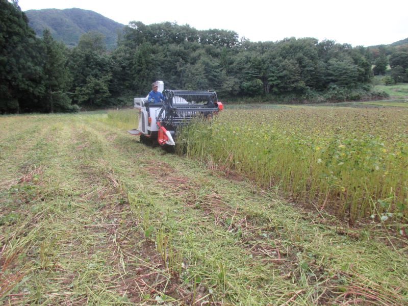 大熊町の特定復興再生拠点区域で大豆の収穫が行われています(令和7年11月18日)