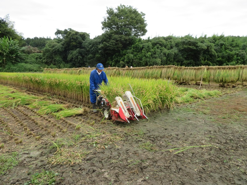 大熊町中屋敷地区において水稲の実証栽培の稲刈りが行われました(令和7年10月2日)