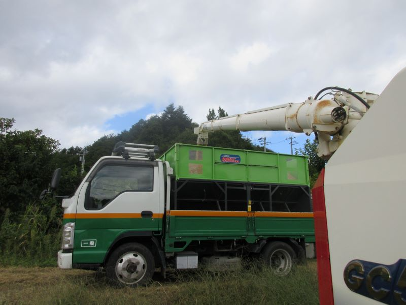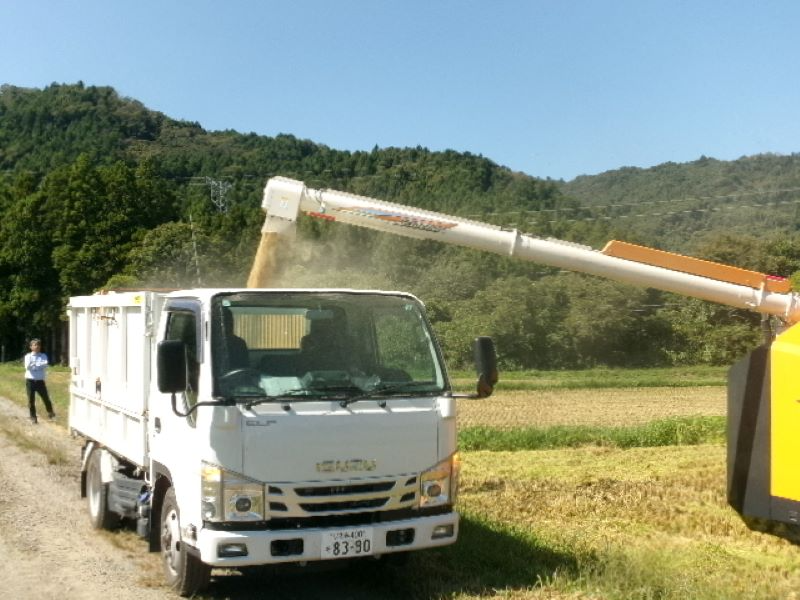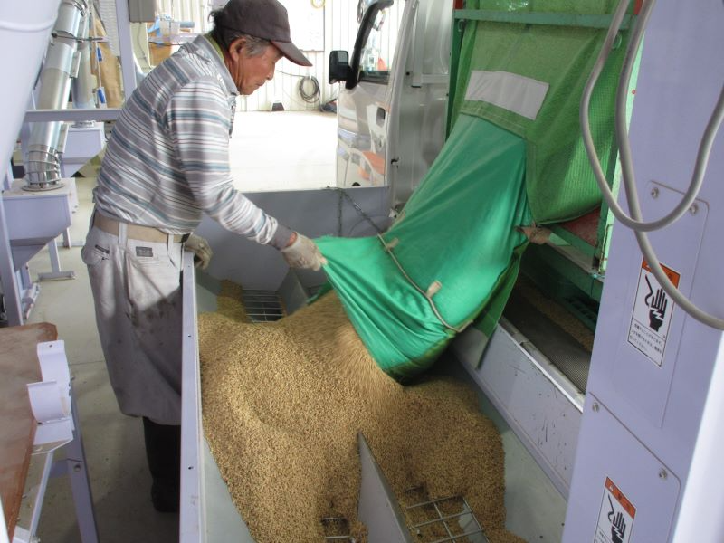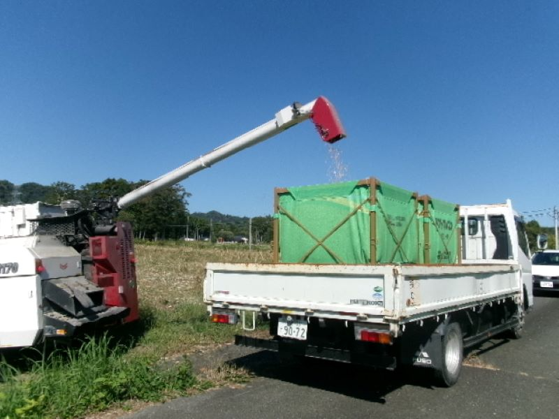 | 収穫した大豆をトラックで乾燥機へ運搬 |