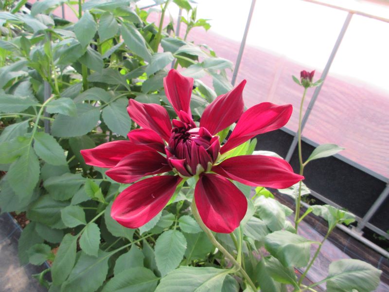 | 品種:黒蝶 明るい花が多いので、アクセントを入れるために、シックな色合いのこの品種を導入した。 |