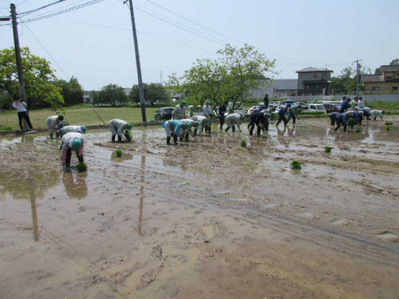 | 試験栽培の田植え作業 (作付品種:ひとめぼれ 約10アール) |