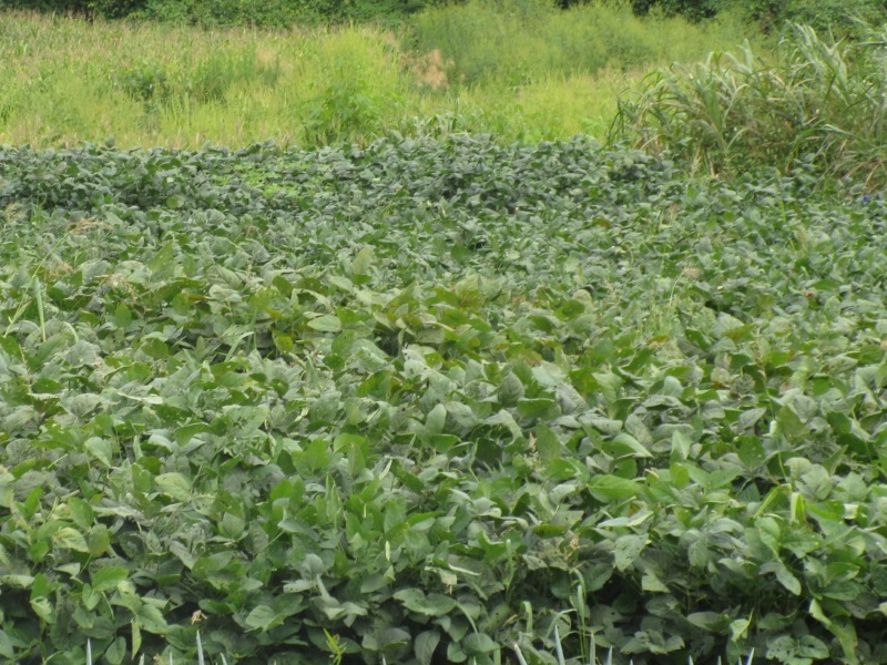 | 大豆の播種作業(5月22日撮影) | 順調に生育中(9月4日撮影) |