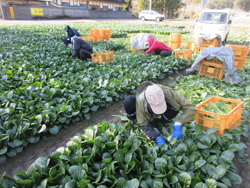 浪江町小野田地区のほ場では株式会社コバヤシファームが小松菜の生産拡大に取り組んでいます(12月24日)