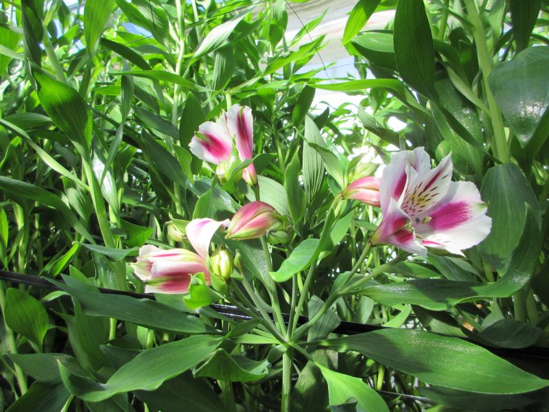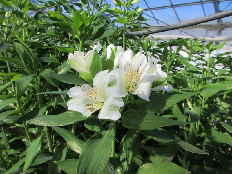 飯舘村の高橋日出夫さんの花き栽培ハウスでは、通年栽培が可能なアルストロメリアを栽培しています。アルストロメリアは、1本の茎から4つから5つの花が咲き、花持ちが良く長く楽しめるため、切り花として人気があるとのことです。高橋さんは避難指示解除後に、飯舘村に帰村して8品種のアルストロメリアの他、トルコギキョウやストックの栽培を行っています。