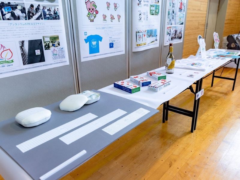 | 川俣シャモやアンスリウムなどの 特産品で開発した商品の展示 |