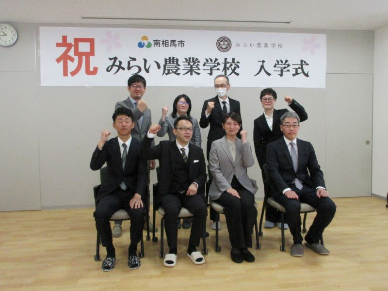 令和7年4月8日(火曜日)、みらい農業学校交流スペースTSUMUGI(南相馬市小高区)において、みらい農業学校第2期生の入学式が執り行われました。本校は、新たな人材の確保及び育成を目的として、令和6年度に開校しており、入学生は、雇用就農に特化したカリキュラムを1年間学ぶこととなります。