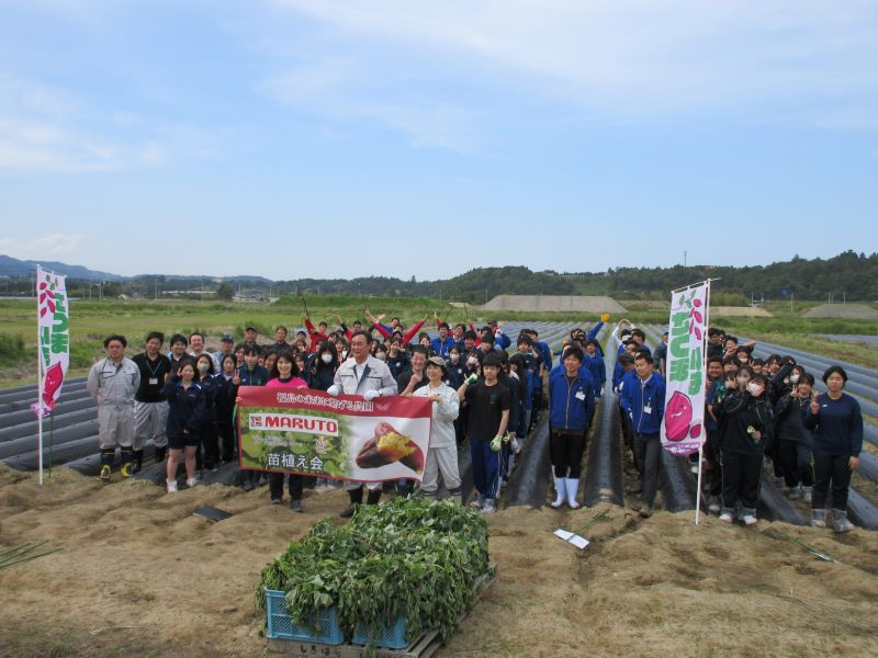 令和7年5月29日(木曜日)、スーパー等を運営する株式会社マルト(本社:いわき市)は「楢葉町×マルト日本一さつまいもプロジェクト」の苗植え会を開催しました。このプロジェクトは、高校生にさつまいもの苗植えから商品化までを手がけてもらうものです。苗植え会には、広野町及びいわき市の5校の高校生や関係者など約170名が参加しました。![]() |