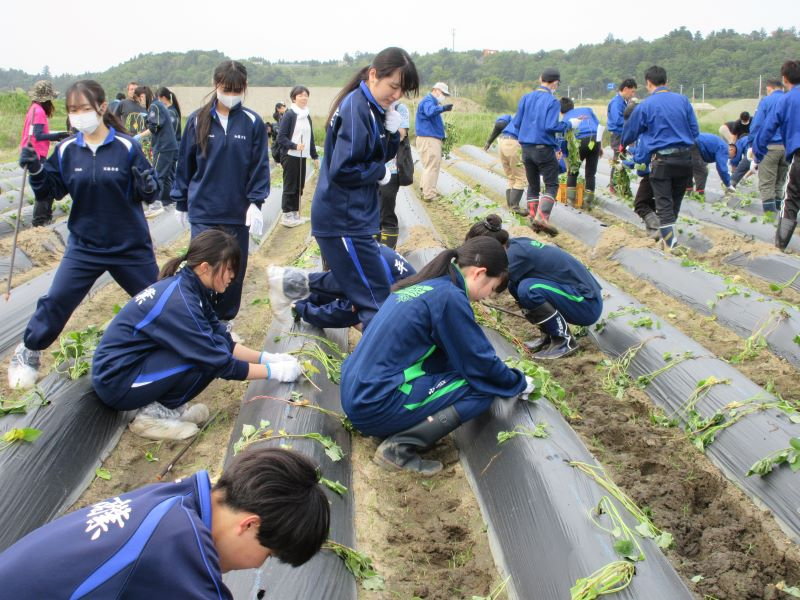 楢葉町で高校生がさつまいもを使用した商品開発の第一歩として苗植えを行いました(令和7年5月29日)