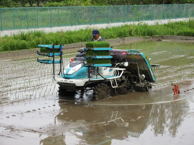| 実証栽培の田植え作業(新山地内) (作付品種:天のつぶ) |