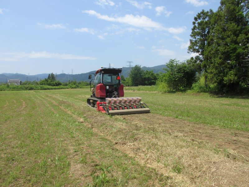 令和7年6月19日(木曜日)に大熊町下野上地区(特定復興再生拠点区域)において、楪園芸株式会社(本社:郡山市)による節水型水稲栽培で乾田直播が行われました。