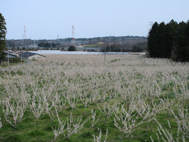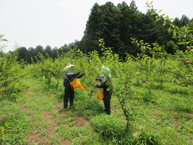 令和7年7月2日(水曜日)、小高区川房地区の大内安男さんが管理している梅のほ場(8ヘクタール)で、梅の収穫作業が行われました。大内さんは震災後の小高地区の農地を復興させるため、農研機構が育成した「露茜」という品種の梅の苗木を、令和元年から植栽し、現在は16,000本を栽培しています。収穫された梅は、梅酒や梅ジュース等に加工され、インターネット等で販売されています。