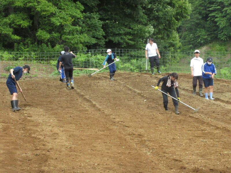 苗植え参加者 (このプロジェクトは、令和4年から開始。参加した高校生が今年(株)福島しろはとファームに就職するなど雇用就農のきっかけにもなっています。) |