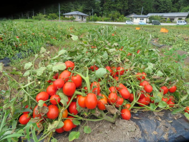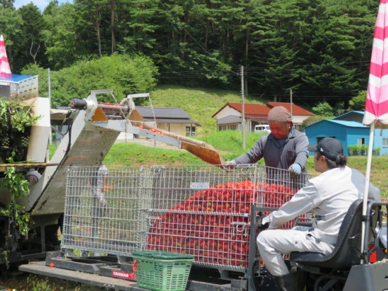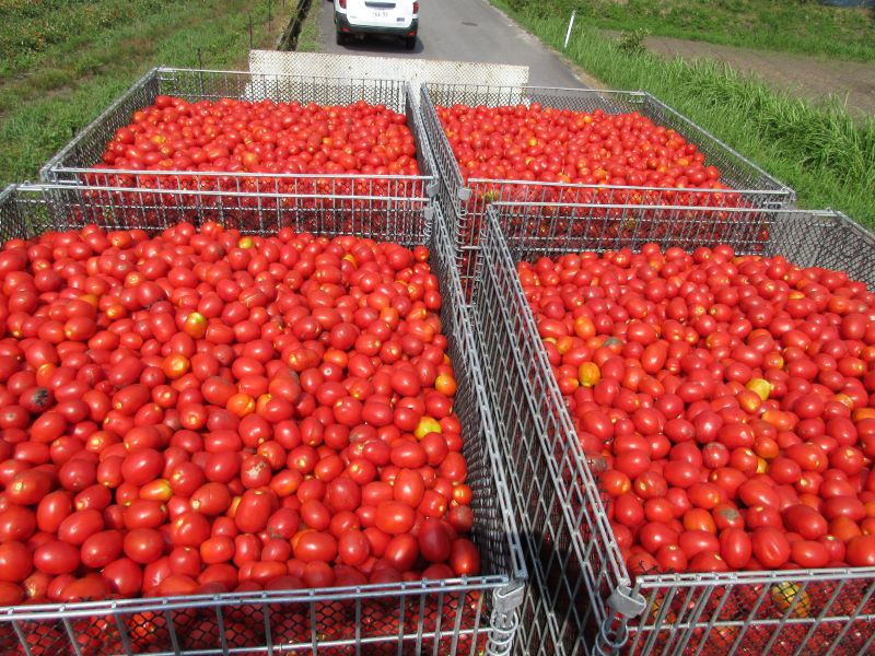 | 収穫作業(手作業で丁寧に収穫) | コンテナに収穫された露茜 |