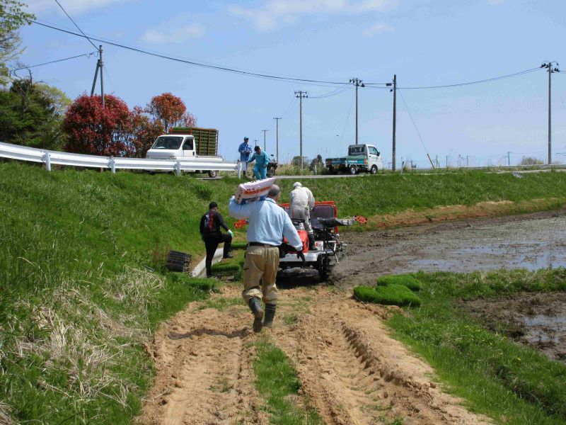 | 5月15日、田植え作業を行った種子ほ場 (前田地区) |