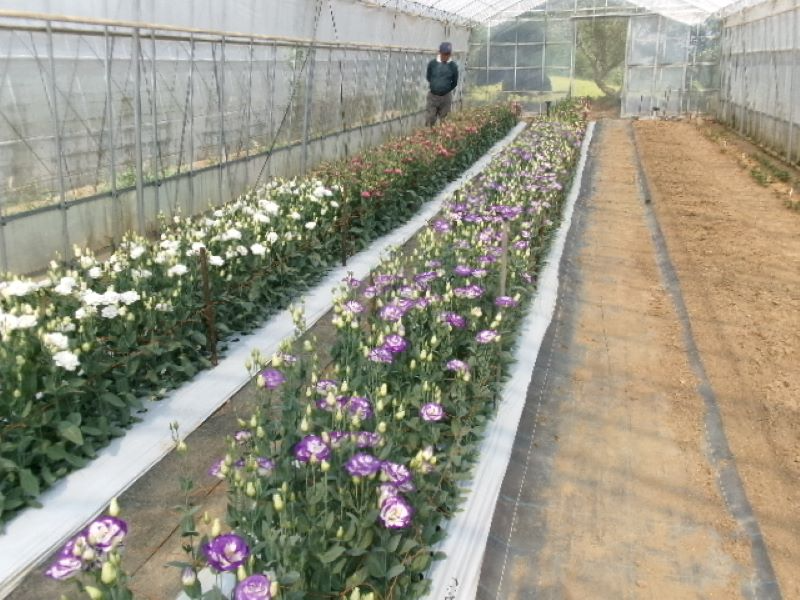 | 廣野さんご夫妻 | 収穫時期を迎えたほ場のシャクヤク (花首が固まってから収穫) |