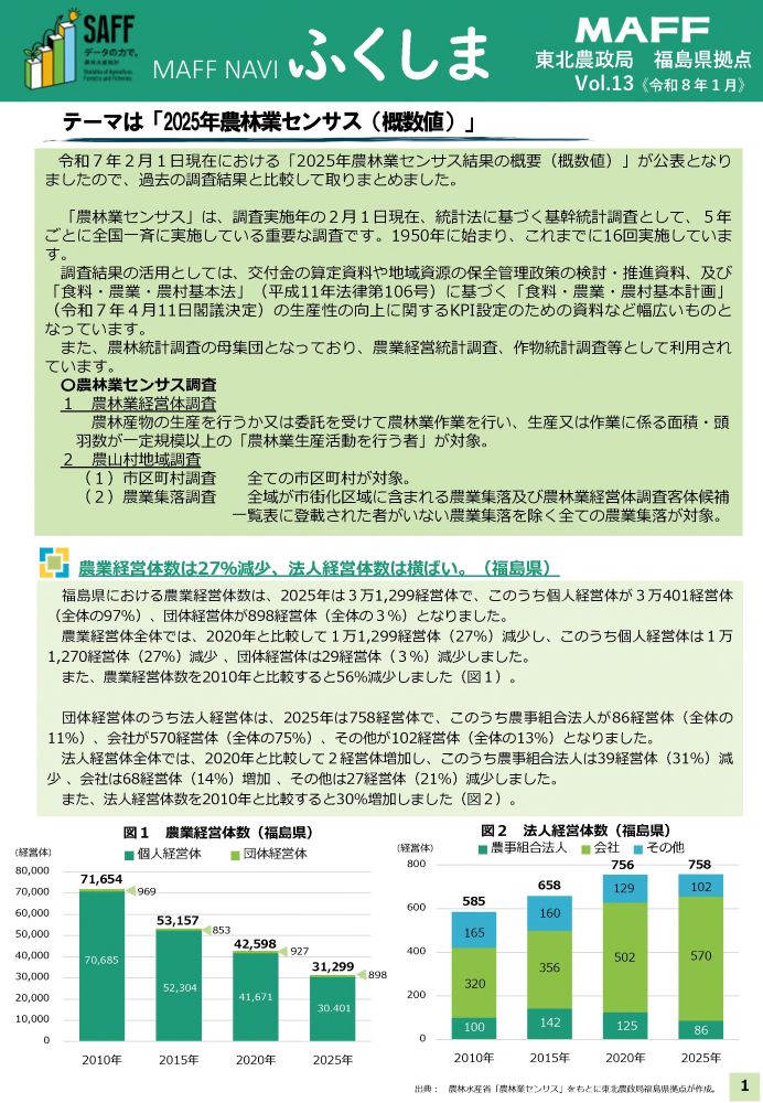 最新号 Vol.13「2025年農林業センサス(概数値)」について