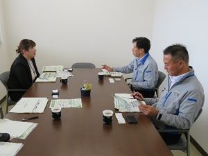 交付式の後には、同席した妻の清水 奈々(しみず なな)さんを交えて、今後の取組に対する意見交換を行いました。清水代表からは「1年かけて出来た事業計画なので、目標以上の結果となるよう取り組んでいきたい。」との抱負が述べられました。