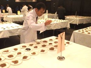 | 鑑評会に出品された製品 | 審査員(野添課長)の審査 |