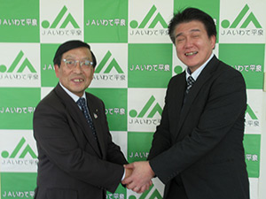 【JAいわて花巻】髙橋代表理事組合長(左)と