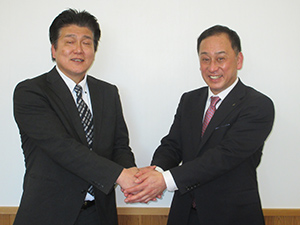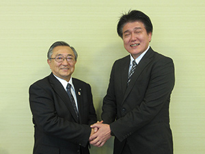 【矢巾町】髙橋町長(右)と中邨地方参事官(左)