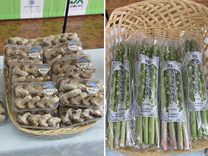 続いて、JA新いわて主催の「一戸町冬季特産野菜産地出陣式」に出席し、菌床しいたけとアスパラガスを試食しながら生産者と交流を深めました。厳しい寒さのなかでじっくり育てられた逸品が全国の消費者に届けられます。