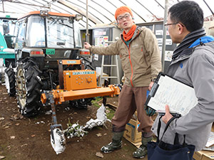 髙橋町長からは、町では農家の後継者不足や法人の構成員も含めた農業従事者の高齢化などが課題となっており、これからは、ほ場整備により大区画化し、スマート農業機械などを活用した効率的な農業を行っていかなければならないとのお話がありました。