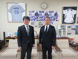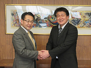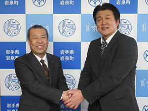 【紫波町】熊谷町長(右)と中邨地方参事官(左)