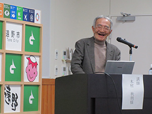 武田市長から、農産物の輸出の取組や市特産のスイカ栽培と加工品の開発、飼料作物の大規模生産に取り組む新規就農者への市の支援体制などのお話がありました。