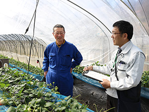 栽培されている品種は、「やよいひめ」「さちのか」「恋みのり」の3種類で、12月から始まった収穫は、7月頃まで続きます。JAへの出荷を中心に、地元の道の駅でも販売しており、3月14日からは、予約制によるいちご狩りが始まり、旬を迎えた新鮮ないちごをその場で楽しむことができます。
