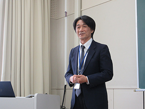 同社盛岡事業所長の小笠原伸哉さんからは、防除技術にロボットやICTを融合させることで、省力化や高品質生産を可能とするスマート農業の取組などについてのお話がありました。