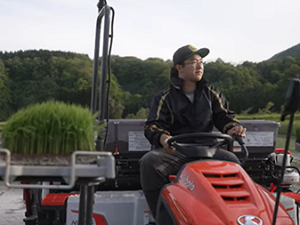 田植え機に乗る山城さん |