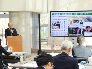 「オーガニックビレッジに関する政策動向と国内における展開状況」ついて 話題を提供する長田地方参事官 |