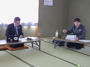 | 千葉啓町長(右)と長田地方参事官(左) | 意見交換の様子 | |