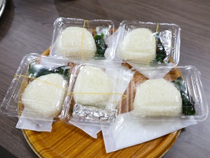石山町長は、「今日の宣言式が有機農業への本格的な取組へのスタートとなる。ここから、安全・安心な食べ物の大切さ、健康の重要性を発信していきたい。」と話され、出席者の皆様と一緒に有機米のおにぎりを試食しました。