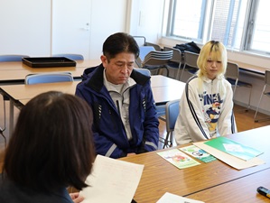 | 意見交換の様子 | 伊藤マネージャー(右)と 鴨志田アシスタント マネージャー(左) |