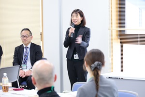 松島高校パソコン部は、ICT活用を起点に地域が抱える課題に取り組んでおり、藻場の再生、未利用資源を活用した商品開発、地域観光PRなど、多様な活動を展開しています。意見交換では、藻場再生プロジェクトの取組内容や、商品開発時の工夫、環境保全や地域貢献への思いについて聞くことができました。