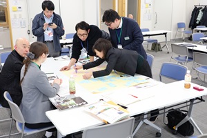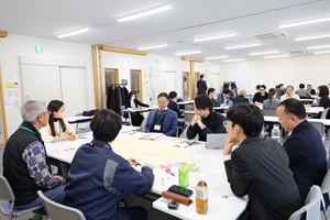 ワークショップでは3つの班に分かれ、第1ラウンドでは「くい掛けの人手不足等のお困りごとに対して、地域外からの継続的な協力を得るために何ができるか」、第2ラウンドでは「地域の資源をどのように活用・発展させ、鳴子の魅力を発信するか」をトークテーマに意見が交わされました。