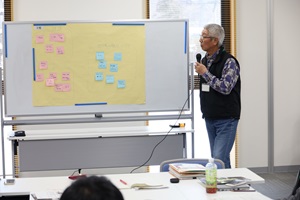 はじめにNPO法人鳴子の米プロジェクトの上野理事長から地域での取組状況や課題等についてお話いただき、続いて前回のワークショップの振り返り、参加企業からの情報提供の後、ワークショップを行いました。