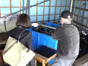 | 出席者で囲炉裏を囲みながら美味しい 有機ランチを試食 |
