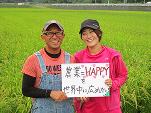 「今月は地元の子どもたちと稲刈りを行います。高校生たちと一緒に販売会をしたり、自分たちがいろいろチャレンジする事でアンテナとなって、HAPPYな農業を発信していきたいです。」
