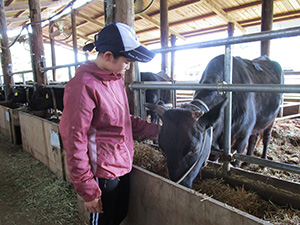 「育児放棄された牛の『ふたば』を赤ちゃんの時から育てていました。卒業しても別れたくなくて(郁恵さんに)頼んで、一緒に入社させてもらいました。毎日大好きな牛に携われて楽しく働いていますが、やっぱり大事に育てた牛との別れはいつも寂しい気持ちになります。」