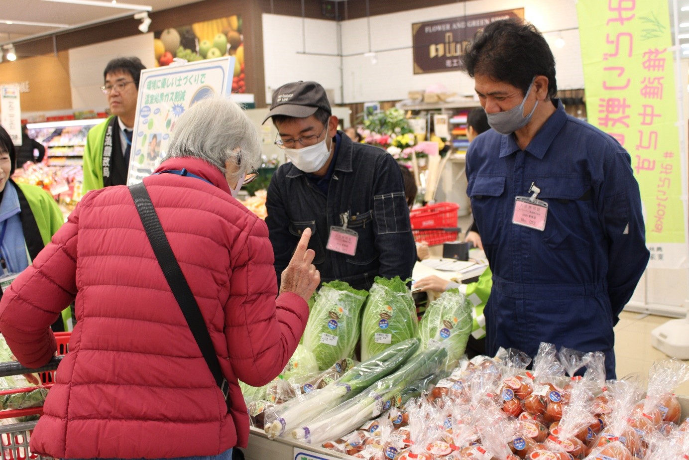 イベントに来場された消費者からは、「農薬や化学肥料の少ない農産物を購入したかったが、目印がなく区別がつかなかったので、『みえるらべる』は良い取り組みだと思う。今後も周知を進めてほしい」、「丁寧な説明で理解が深まった」といった声があり、「みえるらべる」の重要性と消費者からの関心の高さが伺えました。