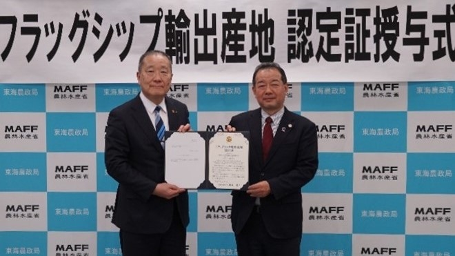 このたび、第3回フラッグシップ輸出産地として全国で28産地が認定されました。このうち東海農政局管内(岐阜県、愛知県、三重県)で認定された4産地に対し、東海農政局は、2月12日と18日に認定証を授与しました。
