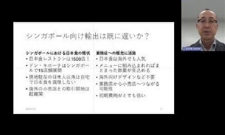 当セミナーでは、根岸 健 氏(株式会社WeAgri)から、消費者トレンドや嗜好、商習慣、ニーズなど、シンガポールへの輸出に向けた有意義な情報を紹介いただきました。
