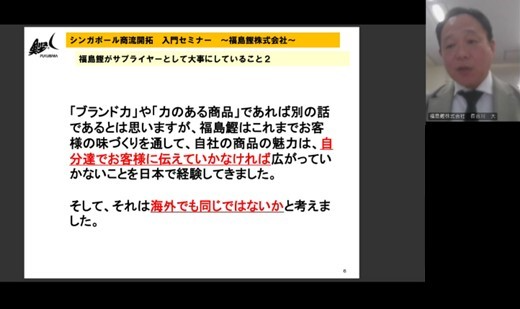 - 令和6年10月25日(金曜日)、第3回セミナー「消費者から選ばれる理由を作る!シンガポール市場との向き合い方」をオンラインで開催しました。